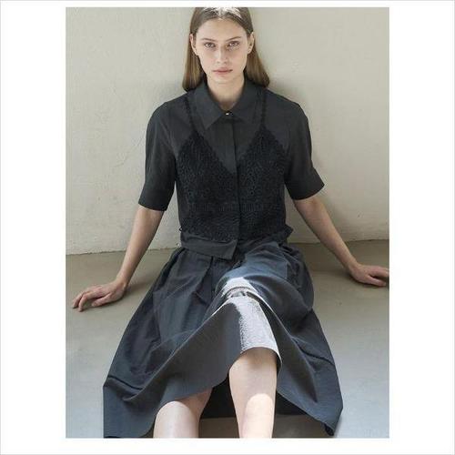 [숲]블라우스배색 뷔스티에형 플레어 원피스 SC4OPM1