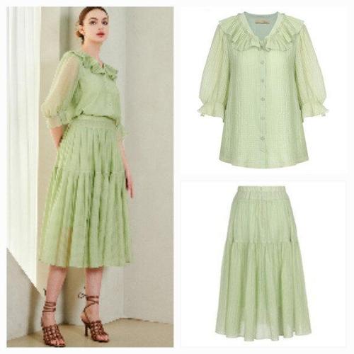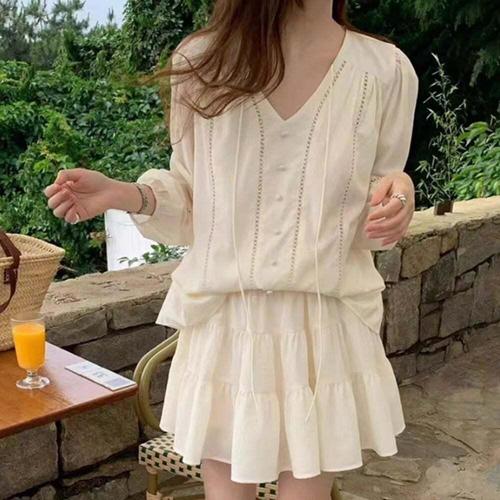 TKX 여성 투피스 세트 블라우스 스커트 편안한 우아한 하이웨이스트 치마