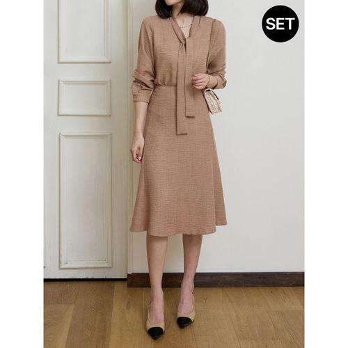 [모리스커밍홈]타이 블라우스+절개 플레어 스커트_M2509SE053C