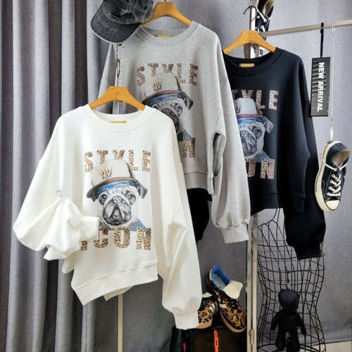 씨샵인더룸 / 블랙라벨 스타일 호피 레터링 프린팅 언발 밑단 긴팔 맨투맨 3color