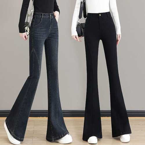 블랙진 부츠컷청바지 여성 데님 스판 세미 키작녀 밴딩 나팔 팬츠