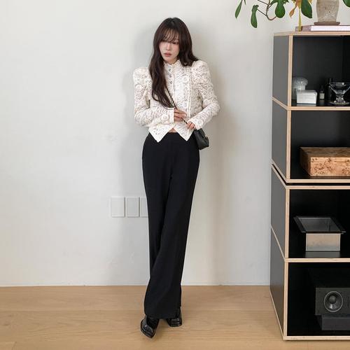 [크로커다일레이디]스판원단 뒤허리밴딩 부츠컷 팬츠 블랙
