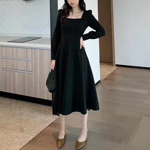 [랄라모션]프랜치 퍼프 블랙 롱원피스(llm0369)