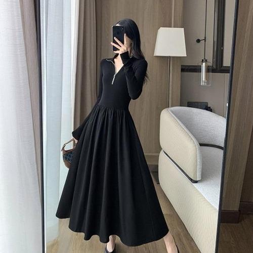 가을 신상 고급스러운 느낌 반폴라 원피스 프렌치 빈티지 무드 우아한 실루엣 세련된 디자인 목선 이너 롱스커트 클래식 현대적인 감각