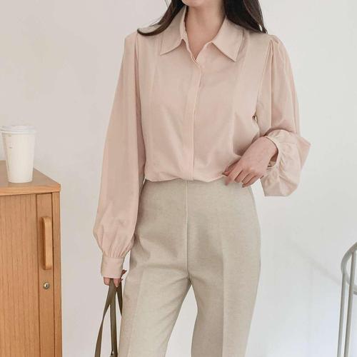 [블랙퀸][블랙퀸] 시스루소매 히든버튼 블라우스 blk003900
