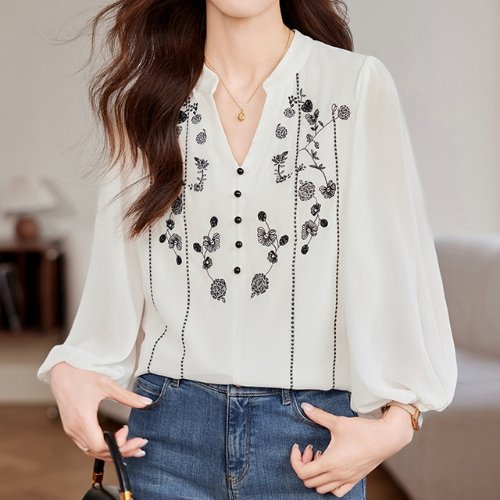 [블랙퀸] 자수플라워 시스루 블라우스 blk003290