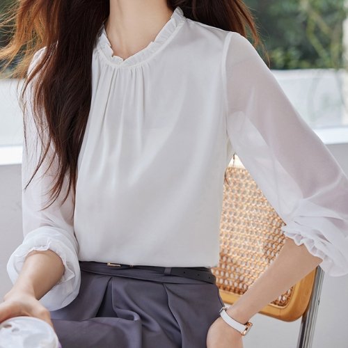 [블랙퀸]시스루 소매 롱 블라우스 blk000131