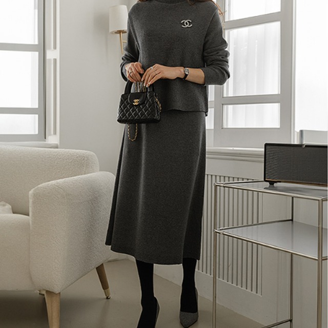 가을 신상 고급스러운 느낌 반폴라 원피스 프렌치 빈티지 무드 우아한 실루엣 세련된 디자인 목선 이너 롱스커트 클래식 현대적인 감각