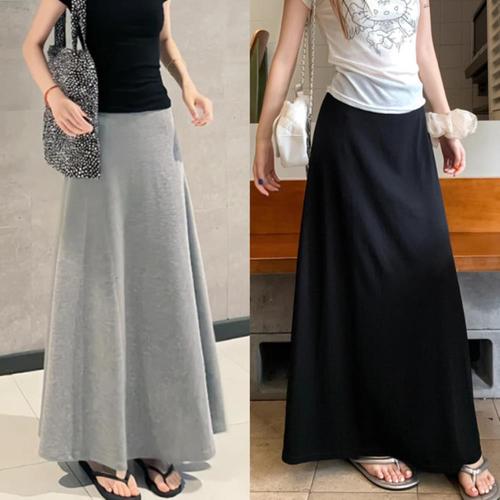[옷자락]여자 클래식 하이웨스트 a라인 탄탄 롱 스커트