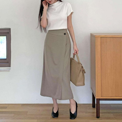 [신상오픈런]여성 클래식 심플 A라인 랩 하이웨스트 롱 스커트