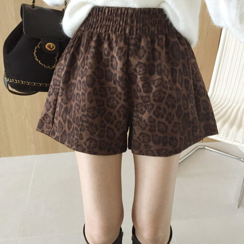 아이미마인 / 딥호피 레오파드 패턴 하이웨스트 포켓 A라인 밴딩 가을반바지