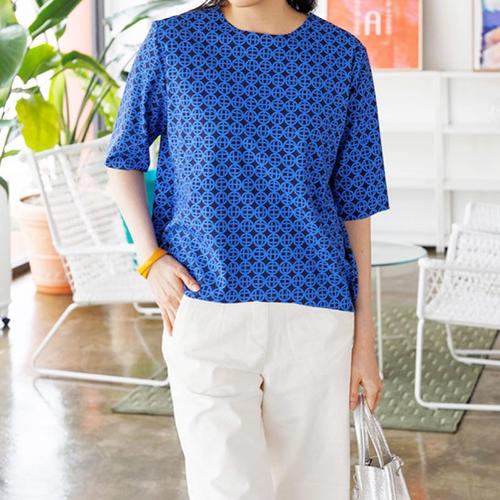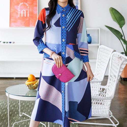 [디아스토리]프린트 카라 드레스 (CHMPDF10)-블루