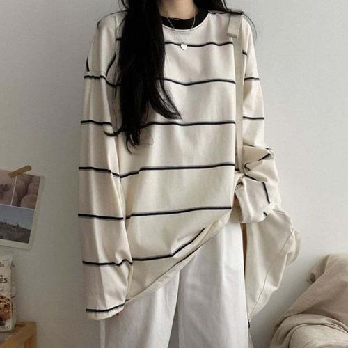 린다샵 여성용 추어뷰 컬러 스트라이프 오버핏 긴팔 티셔츠 cpt16456k53