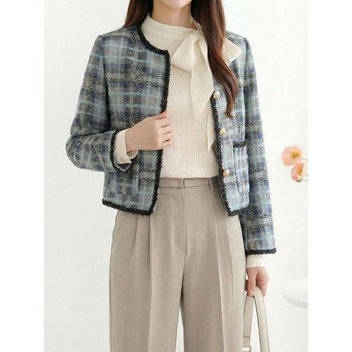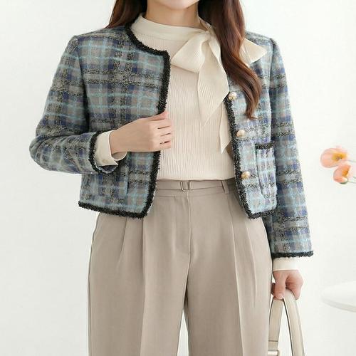 뉴욕멋쟁이 신시아 체크 여성 트위드 자켓