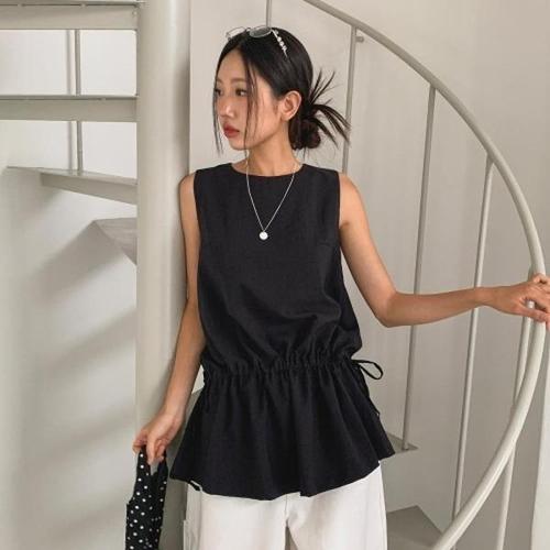 [다잇템][다잇템] 여성 드로우코드 비스코스 코디 슬리브리스 짧은 프릴 원피스_22155472_588872