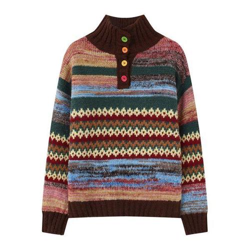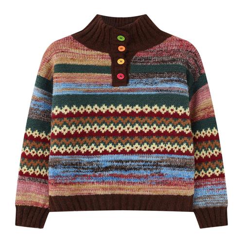 [BNX]페어아일 패턴 하이넥 컬러 버튼 니트 (BX4KP003L0)