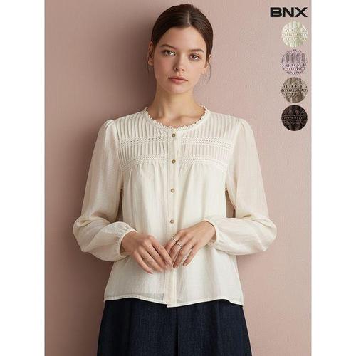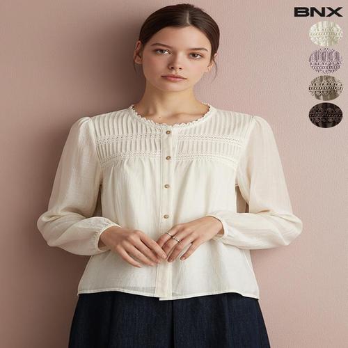 [BNX]여성 레이스넥 주름 블라우스