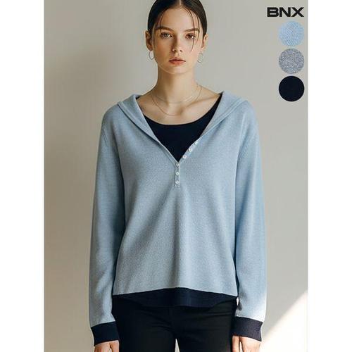 [BNX]여성 후드 레이어드 니트