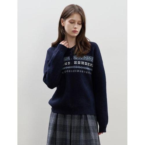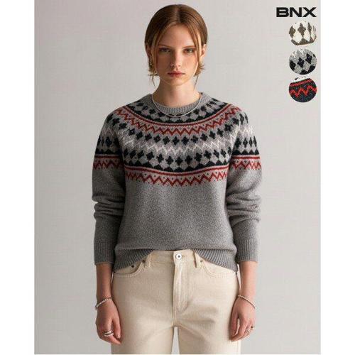 [비엔엑스]여성 노르딕 패턴 라운드 니트