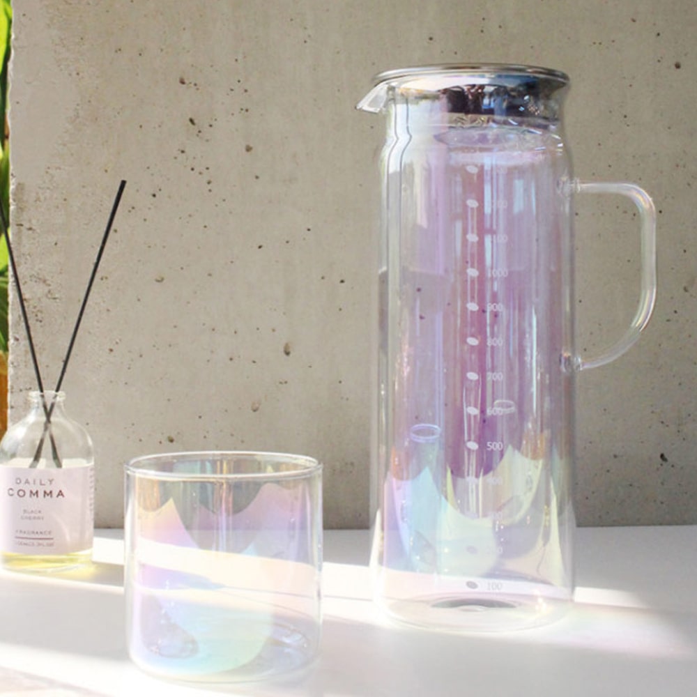 오로라 내열 유리물병 홀로그램 냉장고 물통 1.3L
