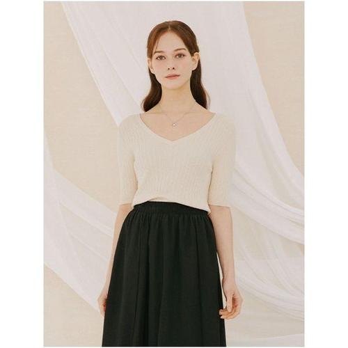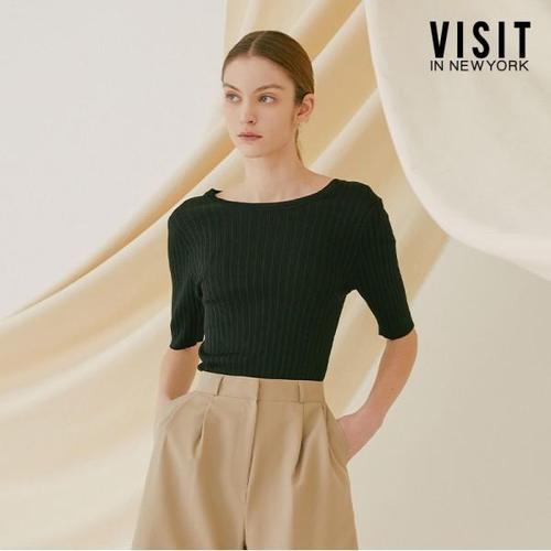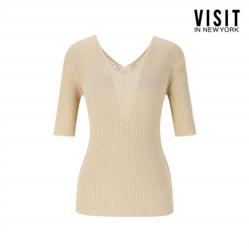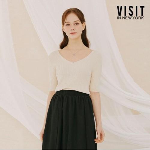 [비지트인뉴욕]브이넥 립트 반팔 니트(VY4SK91)