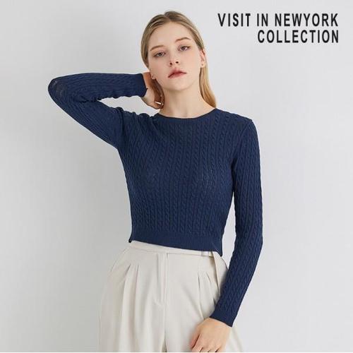 비지트인뉴욕 라운드넥 세미 케이블 니트 VZBLK53
