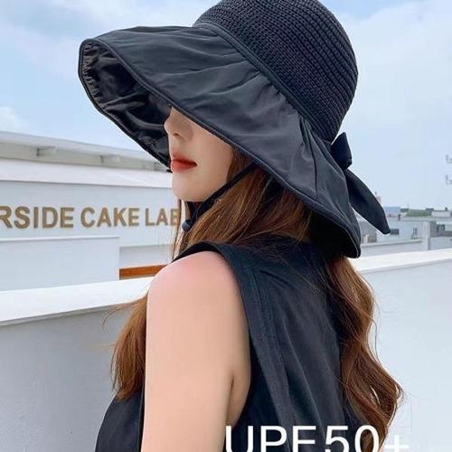 [다잇템][다잇템] 여자 와이드챙 비치룩 암막 리본 벙거지 버킷햇 모자_18575500_588872