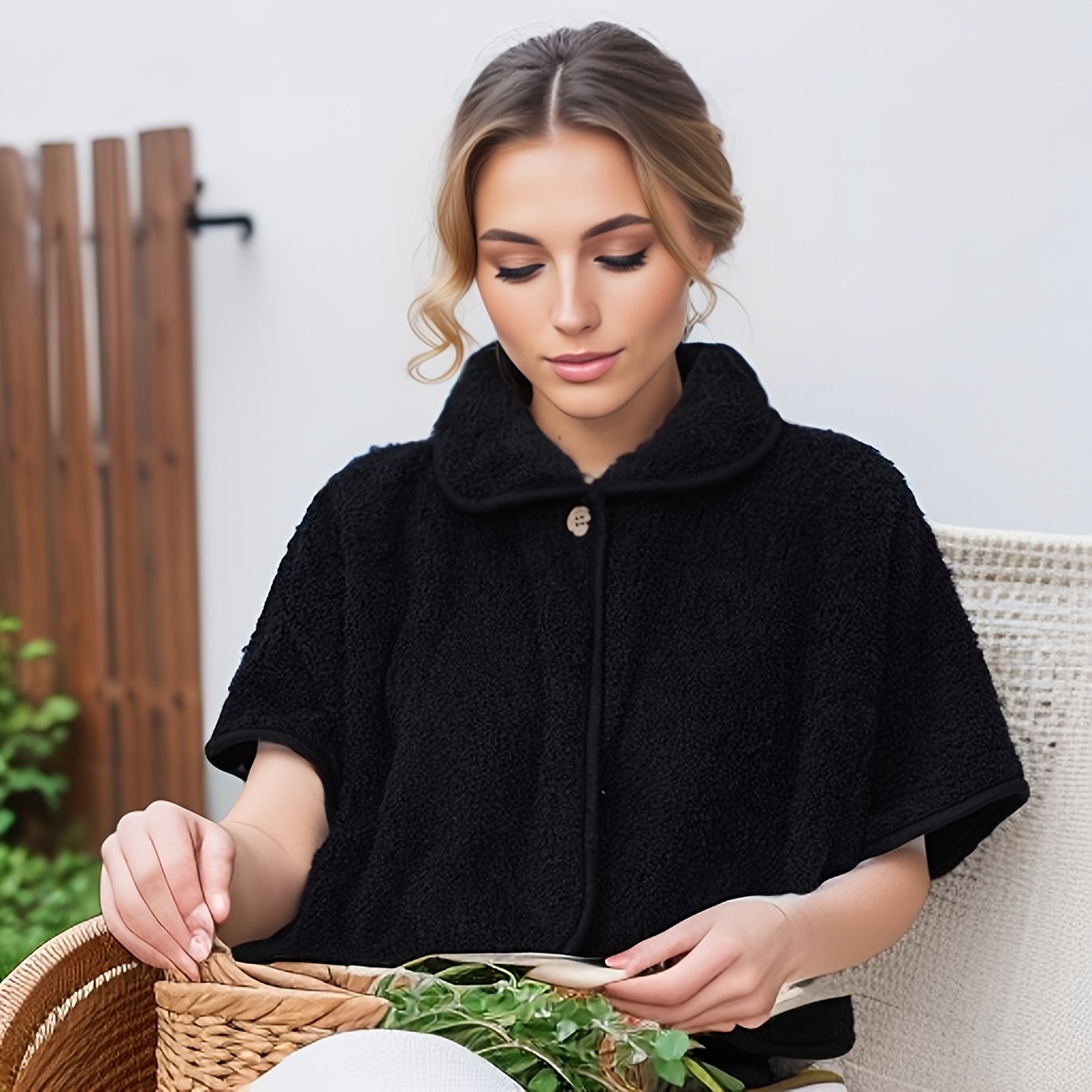 TEMU 가을-겨울 초극세사 따뜻한 홈 숄 | 캐주얼 스타일, 단색, 원단, 손세탁