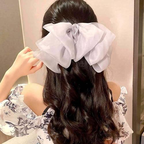 빅사이즈 왕리본 쉬폰 엔젤 반자동 집게핀 헤어핀