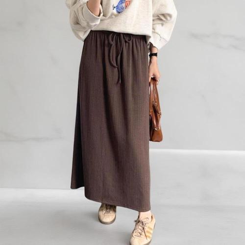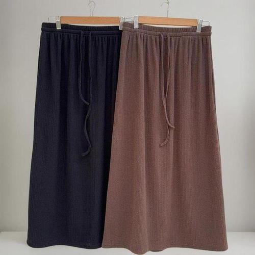 [옷자락] 여성 골지 롱스커트 빅사이즈 리본 뒤트임 밴딩 스커트