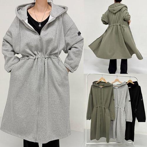 150kg까지 빅사이즈 여성 롱 루즈핏 날씬해보이는 후드집업 후드티 겨울 편한 기모 따뜻한 오버핏 허리 스트링 bf 인스 심플 데일리 패션 보온 젊어 보이는 나른한 88 원피스