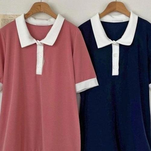 [엄지척]캐주얼 상의 빅사이즈 무지 심플 카라 반팔 큰사이즈_19679137_667501
