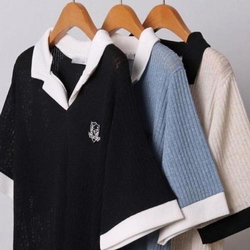 [엄지척]빅사이즈 여성 카라 정장 캐쥬얼 반팔 니트 티셔츠_19659542_667501