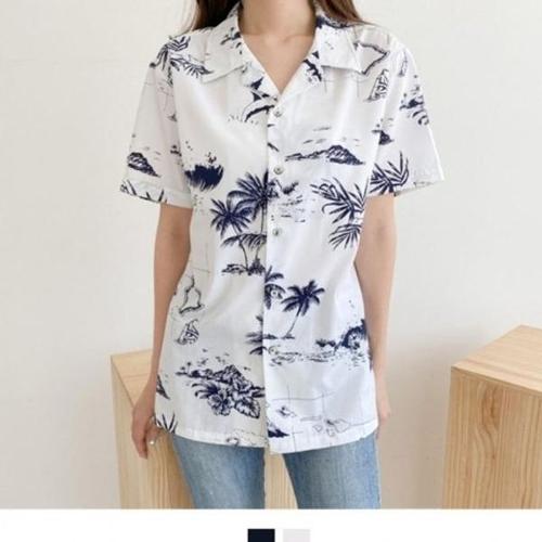 [엄지척]블라우스 반팔 빅사이즈 오픈카라 여름블라우스 야자_19660066_667501