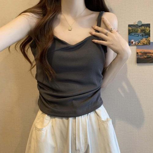 [셀럽하우스]하트넥 LTCO4088 여자 나시탑 셔링 이너 슬리브리스 빅사이즈