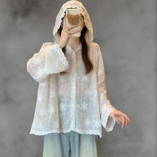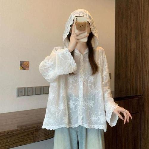 [다잇템_패션]여성 레이스 비침 후디 빅사이즈 블라우스