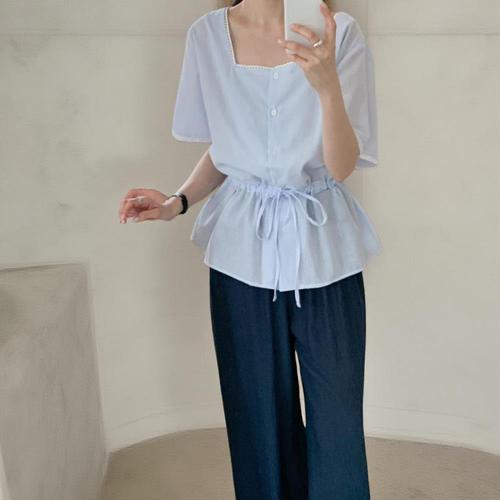 여성 스퀘어넥 빅사이즈 레이스 리본 블라우스