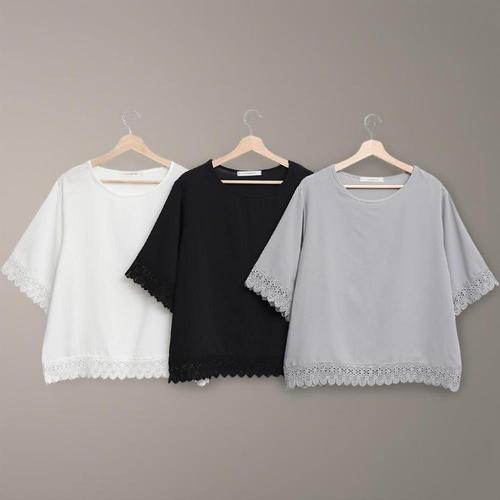 [미라클세븐]여성 레이스 셔링 퍼프 빅사이즈 라운드넥 반팔 블라우스