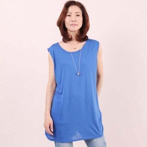 여자 여름 귀여운 디자인 루즈핏 나시 민소매 티셔츠 오버핏 롱나시 여성 빅사이즈