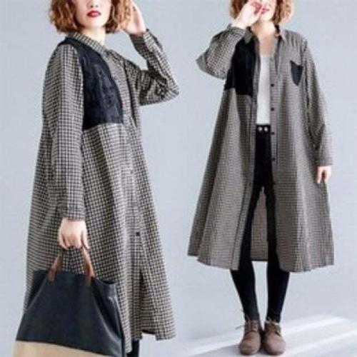 [다잇템]여성 면혼합 격자 빅사이즈 키치무드 롱셔츠