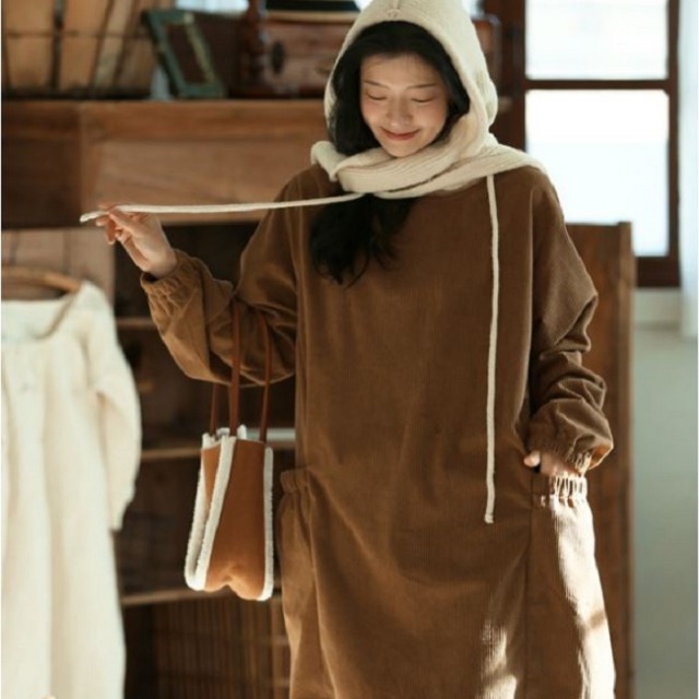 [미라클세븐]여성 기모 후드 롱원피스 빅사이즈 레터링 등원룩