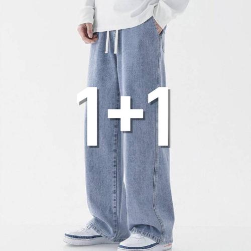 [노프라브럼]1+1 남녀공용 사계절 밴딩 빅사이즈 와이드 데님 팬츠 4컬러