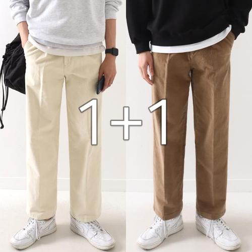 [지지블랙][1+1] 신축성이 좋은 코츠 원턱 와이드 코듀로이 팬츠 스판 골덴 바지 빅사이즈 ZZBPT010