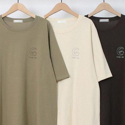 빅사이즈 사선라벨 루즈 롱 반팔티