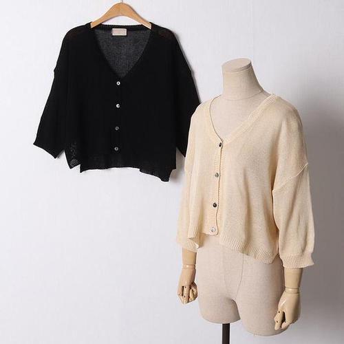 [살안타템] 고스리 브이넥 썸머 니트 가디건 82597 빅사이즈 여성의류