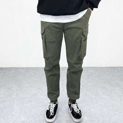 [엠클로]남자 빅사이즈 면 스판 밴딩 지퍼 포켓 카고 조거팬츠