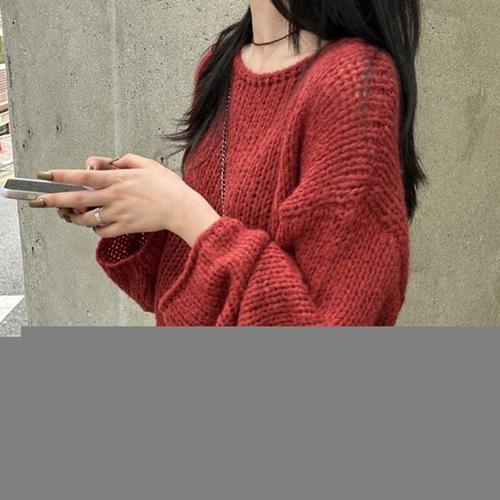 모임 오버핏 카라넥 롱 빅사이즈라운드넥 여자니트