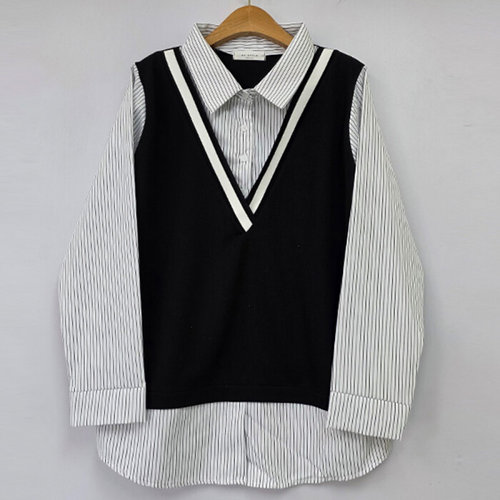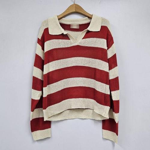 나야홍 / 빅사이즈 502 레트로카라배색니트셔츠 DBST895