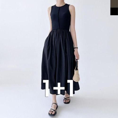 [에이치플러스몰]여름 끈 나시 레이어드 롱원피스 편한 캐주얼 루즈핏 휴양지 원피스 빅사이즈