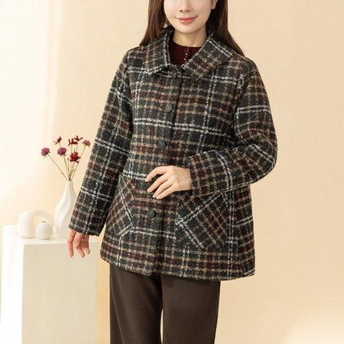[디얼마미]클래식 카라 체크 반 코트 /마담 미시 중년 여성 빅사이즈 40대 50대